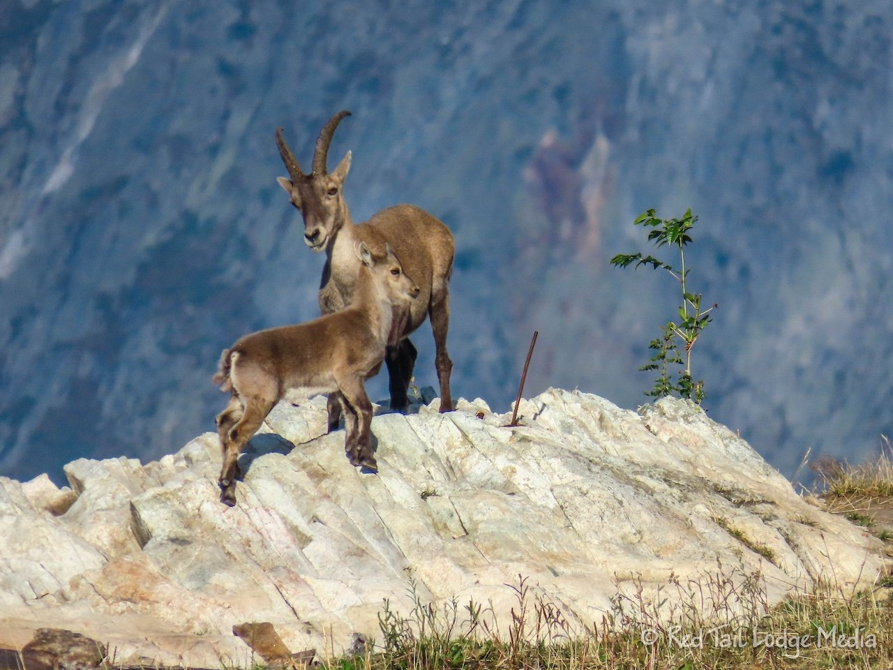 Our clothes did not completely dry overnight, so we hung them out on the clothes line, in the sun, for about 45 minutes before hitting the trail. We were the last ones to leave the rifugio that morning. As a reward, we were treated to a mother ibex and her baby. They grazed on the mountain side not too far from the rifugio.