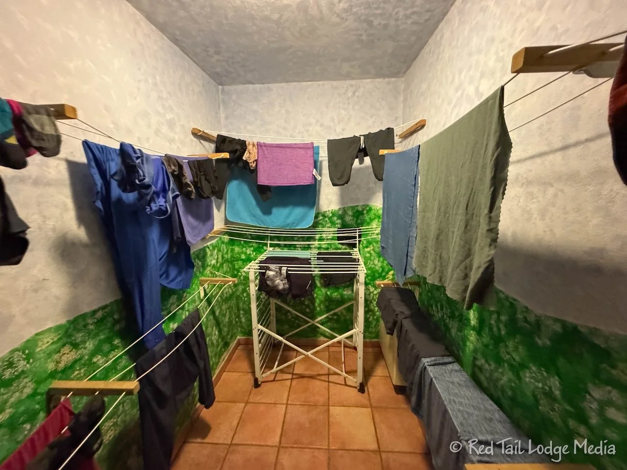 After checking in, we took our showers, to allow plenty of time for our clothes to dry. There was a drying room in the basement near the showers, where we hung up our clean, wet clothes and towels. However, by morning, everything was still pretty wet. Bummer!