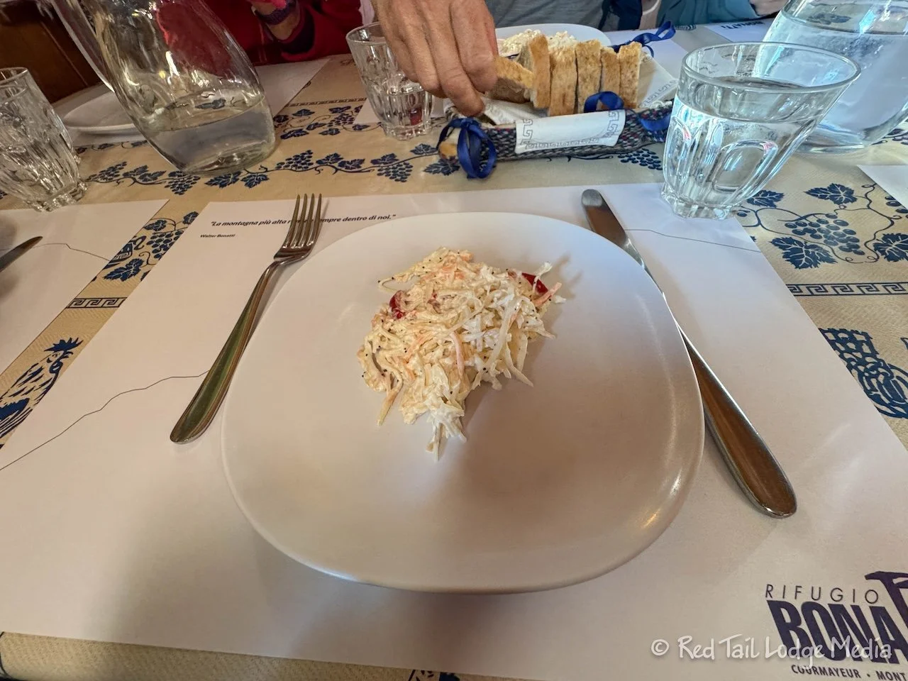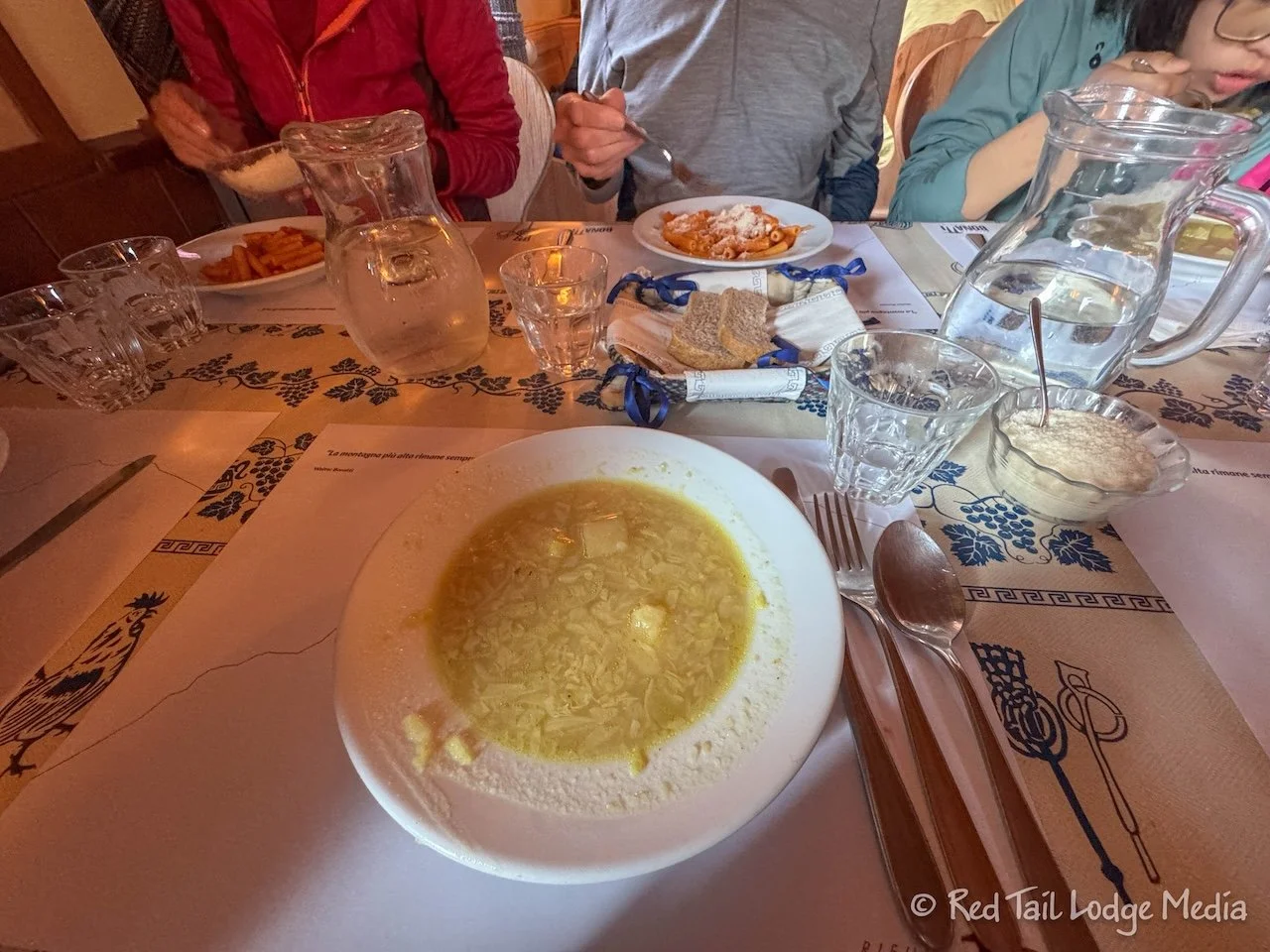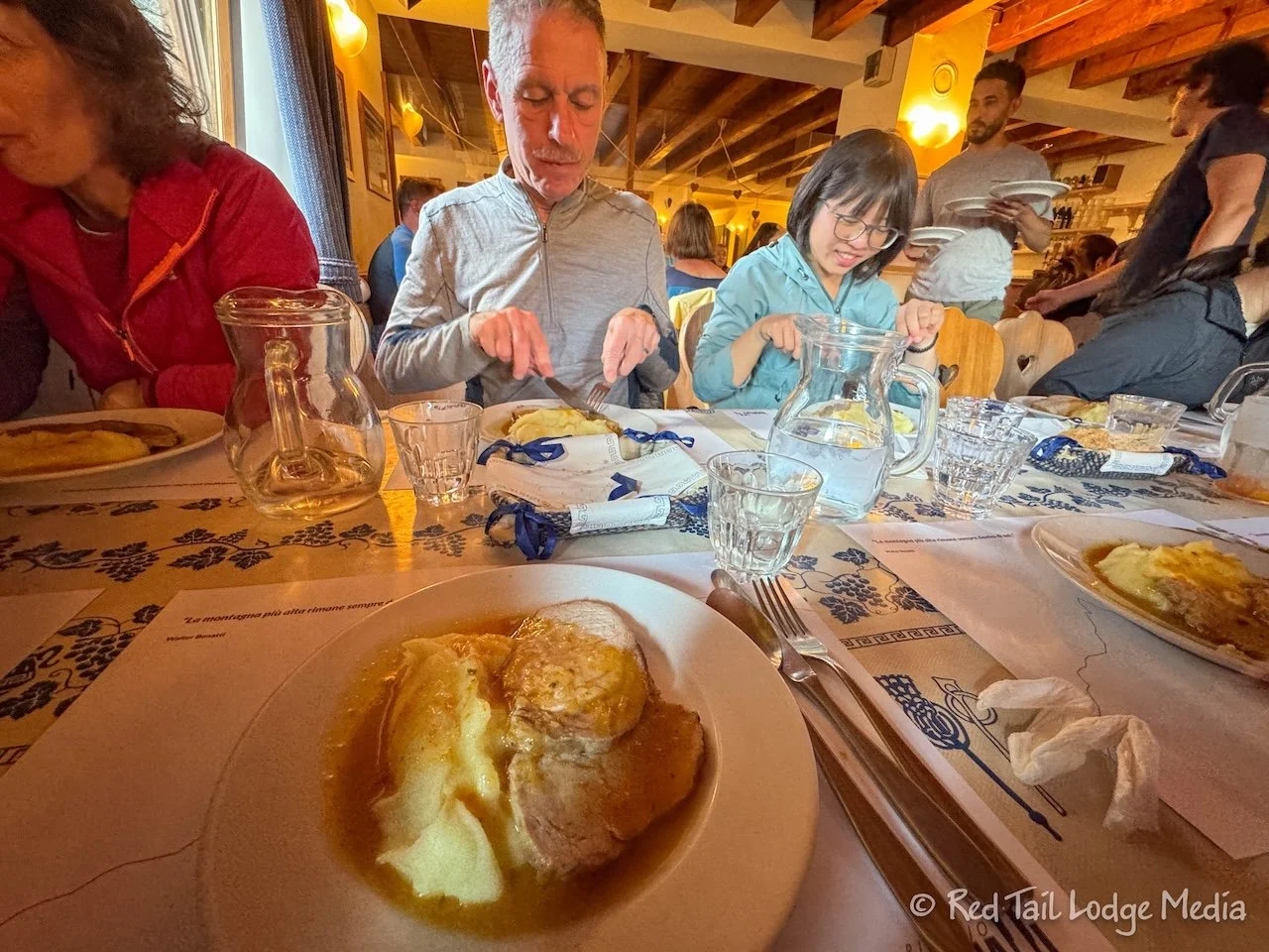 Dinner was at 7 pm. We didn’t have assigned tables, but they sat people at tables as they arrived for dinner. The rifugio had a capacity of about 80 people, so the dining room was pretty loud.