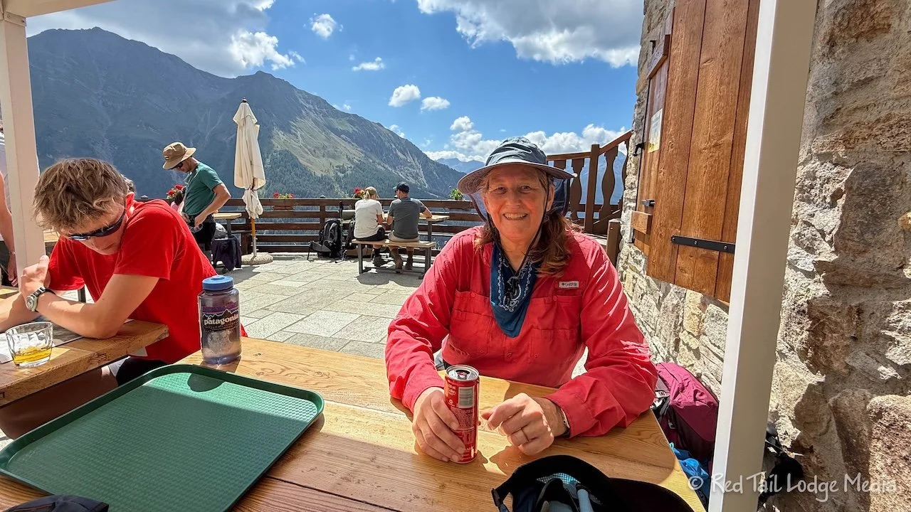 We reached Rifugio Walter Bonatti around noon, just in time for lunch. Our hike for the day was 7.9 kilometers (4.9 miles) with an elevation gain of 350 meters (1148 feet) and an elevation loss of 256 meters (840 feet). It was hike number 38 of our 52 Hike Challenge for 2025.
