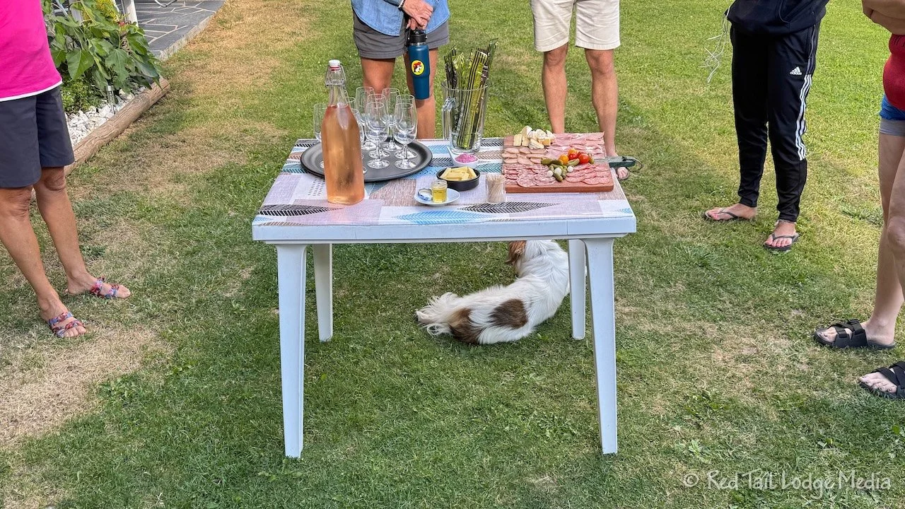 At 6:45 pm, our gracious hosts served appetizers. It consisted of a glass of wine and a charcuterie of local meats and cheeses. There were also breadsticks to dip into homemade beetroot hummus. It was all delicious.