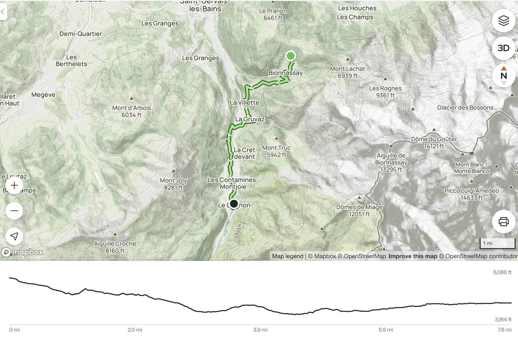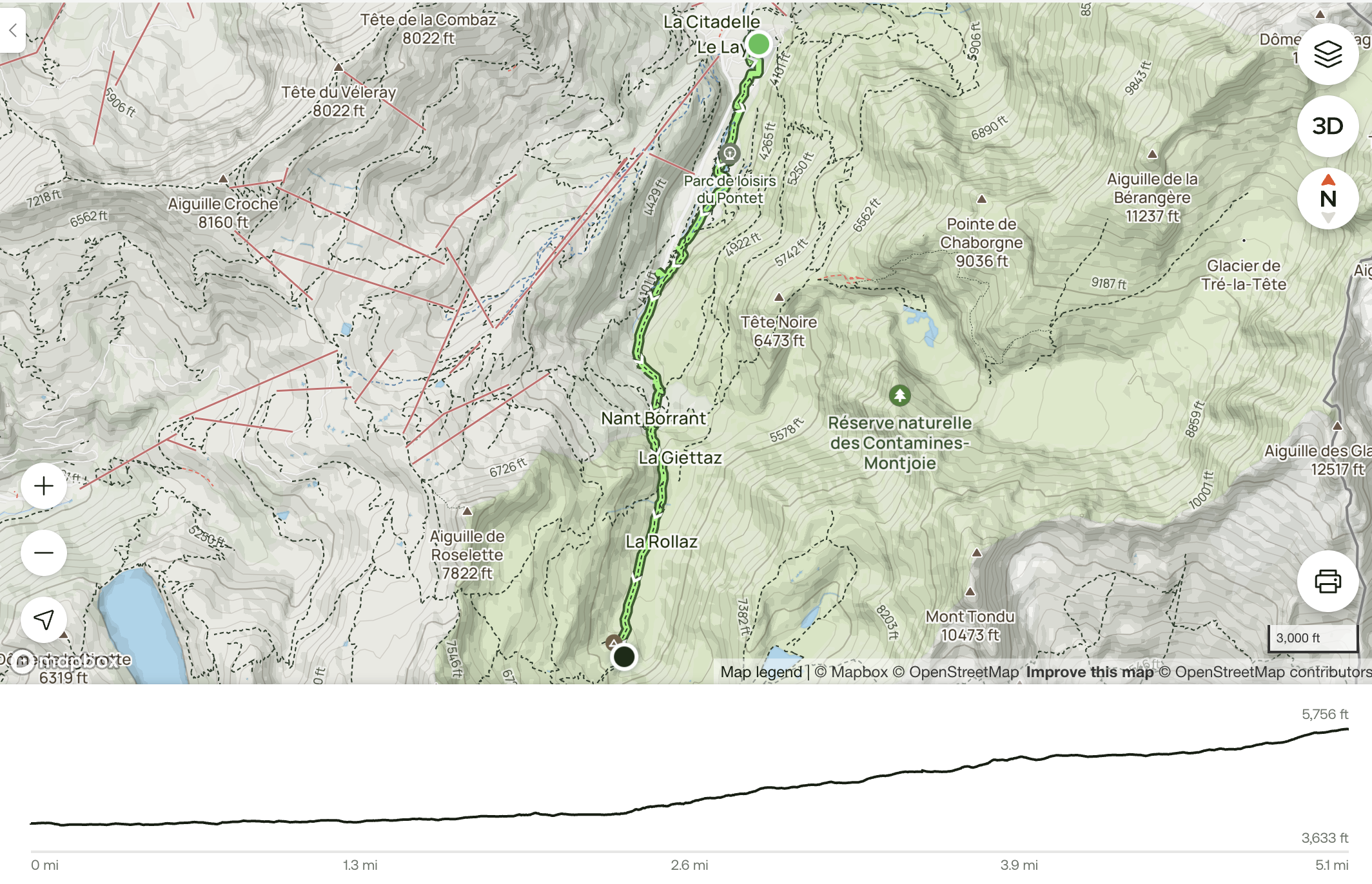The Tour du Mont Blanc (TMB) is a 165 kilometer (103 mile) hiking trail which encircles Mont Blanc, the highest peak in the Western Europe, through France, Italy, and Switzerland. Our original plan was to complete the hike in 21 days, but we extended it to 22 days before we even started, because Ann was recovering from a bad cold. This post covers days 2 and 3 on the trail, from Refuge du Fioux to Refuge du la Balme, with an overnight stay in Les Contamines-Montjoie, all in France.