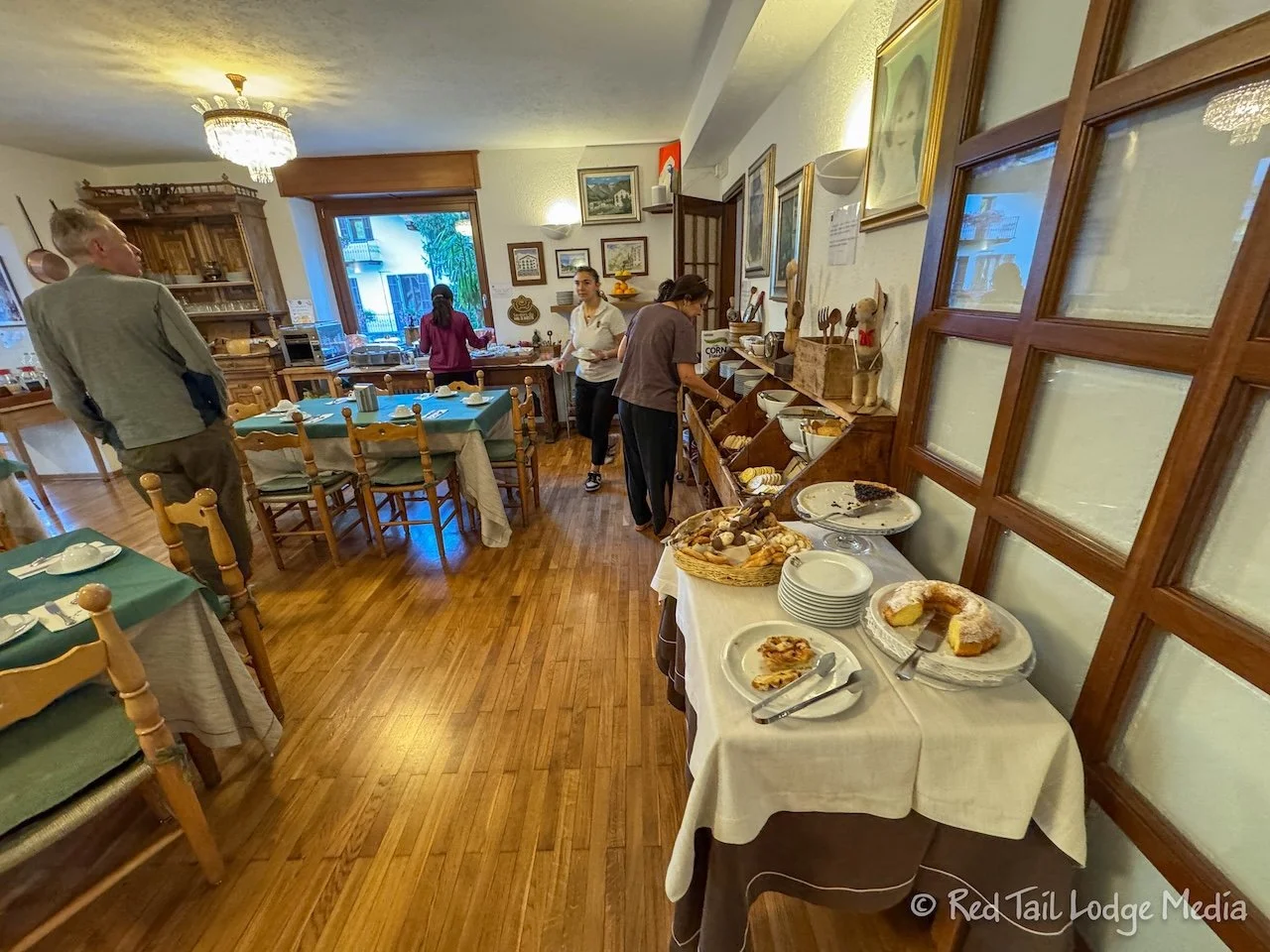 Breakfast at Hotel Berthod was wonderful. There was a large variety of items. There were scrambled eggs, green beans, cold cuts, cheeses, pancakes, several different types of croissants, several types of yogurt, cereals (including muesli), breads, and an array of sweets.