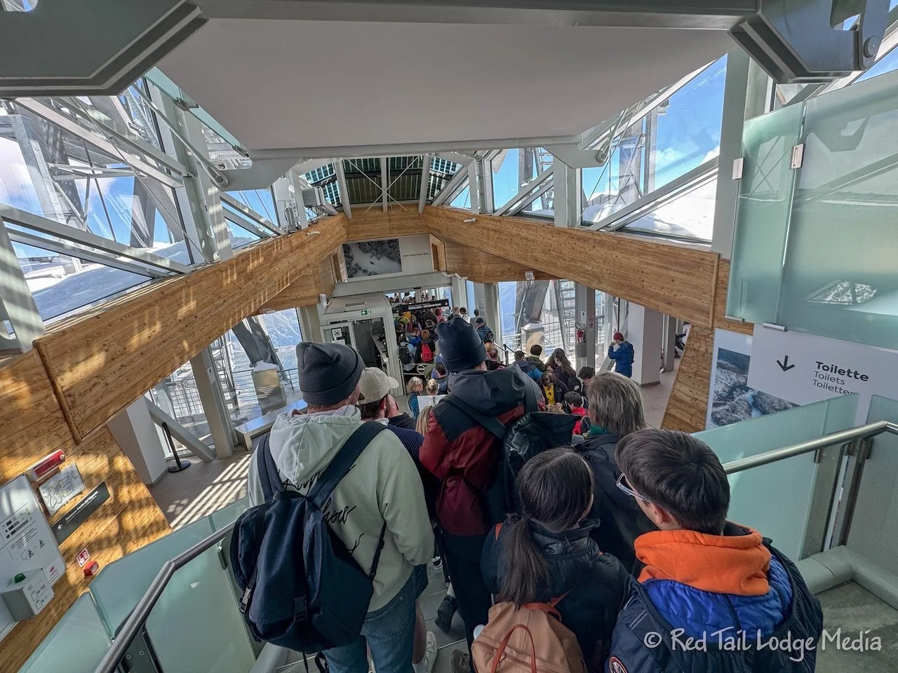 Then we got in line to go back down to the Pavilion station. It was a long line. Again we waited over half an hour to get on a gondola.