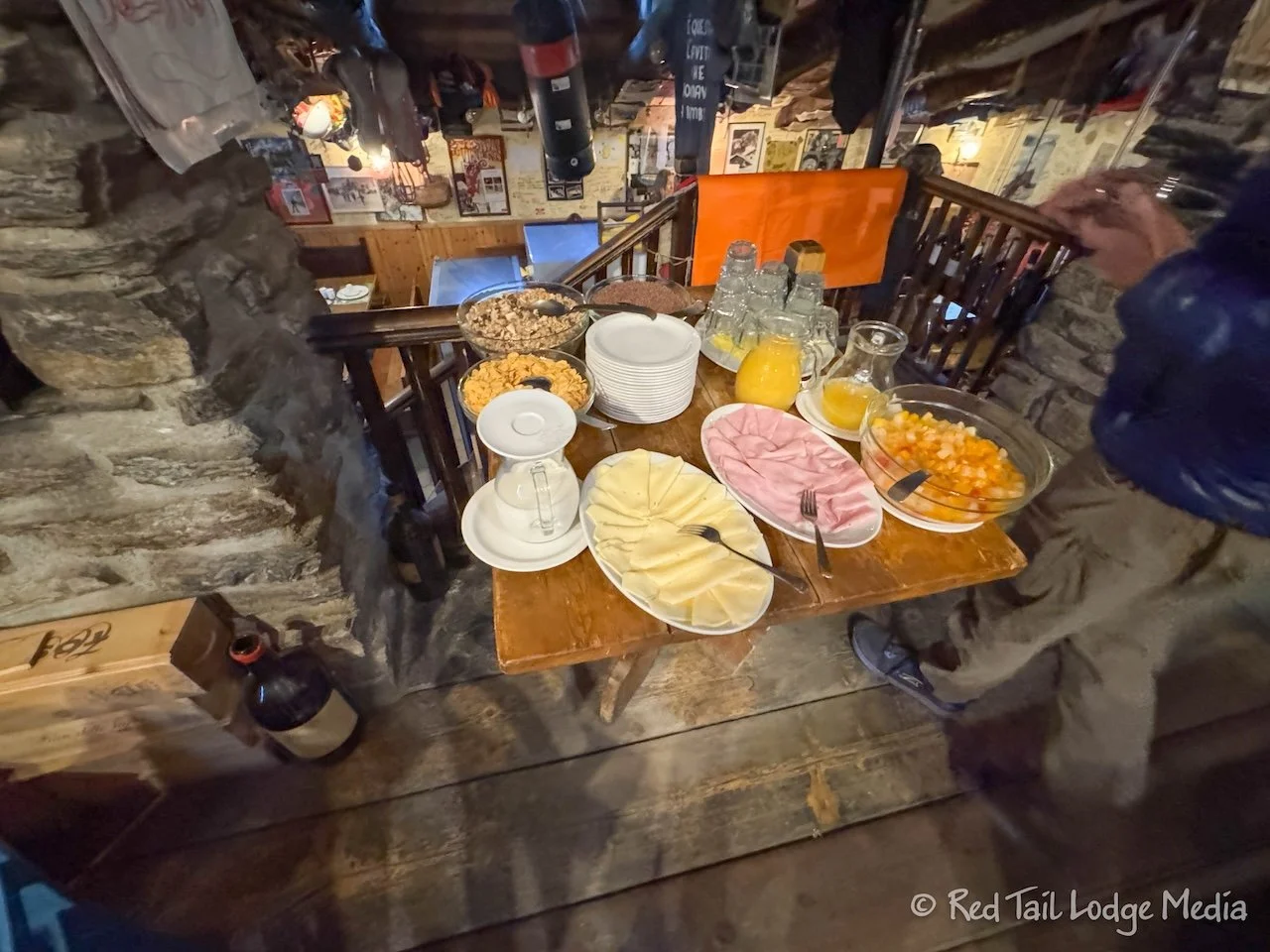 Breakfast at the rifugio that morning was pretty basic, yogurt, fruit cocktail, muesli, corn flakes, bread, meat, cheese, juice, tea, and coffee. At breakfast, we learned that one of our table mates had gotten sick during the night. Oh no! His partner was trying to figure out what to do. Their next night’s stay was planned to be Rifugio Bonatti, about 18 kilometers (11 miles) and a lot of elevation change away. There was a chair lift that could take them down to Courmayeur. The other couple at our table heard about a free shuttle from Courmayeur to a place not too far from Bonatti. We hope our fellow hiker recovers quickly and that they figure out a plan to get them through the next day or two. Best wishes!