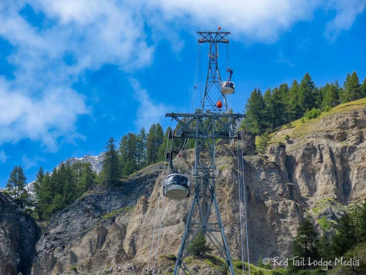 The first gondola took us to the Pavillon station (The Mountain), at an elevation of 2173 meters (7129 feet). The gondola itself was pretty cool. It was circular and rotated a full revolution on the way up, so everyone had a good view in every direction. All gondolas should be like that!