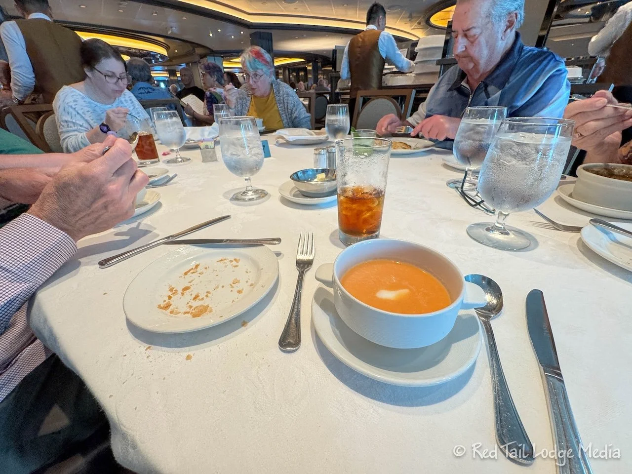 In addition to Henri and Jacalyn, the other three guests assigned to our table showed up. They were Chris, Chris, and Theresa. Chris and Chris were married and one of them was Theresa’s brother. The two Chrises were from Seattle, Washington while Theresa was from Nashville. Everyone at the table were veteran cruisers, so it was nice to learn some pointers from their experiences.