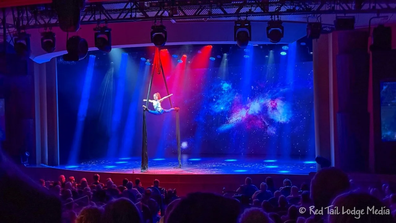 Right after dinner, we headed straight for the Princess Theater to get a seat. We were there around 7 pm and the place was already pretty full. It was another fully packed house by the time the show started. The show was Anna and Oliver, a duo of acrobats. They were very talented, but it seemed like they struggled to put a full 45 minute show together. Several parts of the show were a little weak. It was entertaining, but not our favorite show so far.