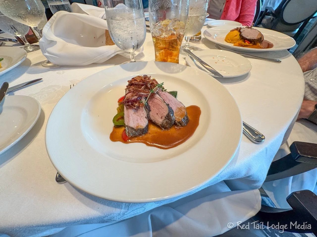 There were quite a few people dressed up, but not many, if any, tuxedos. However, there were also others who were dressed rather casually. No one seemed to care what others were wearing and Princess didn’t seem to be enforcing any rules. We seemed to fit right in. Ann was in her leggings, hiking shirt, and Teva sandals while Keith had a button down shirt with his hiking pants and trail runners.