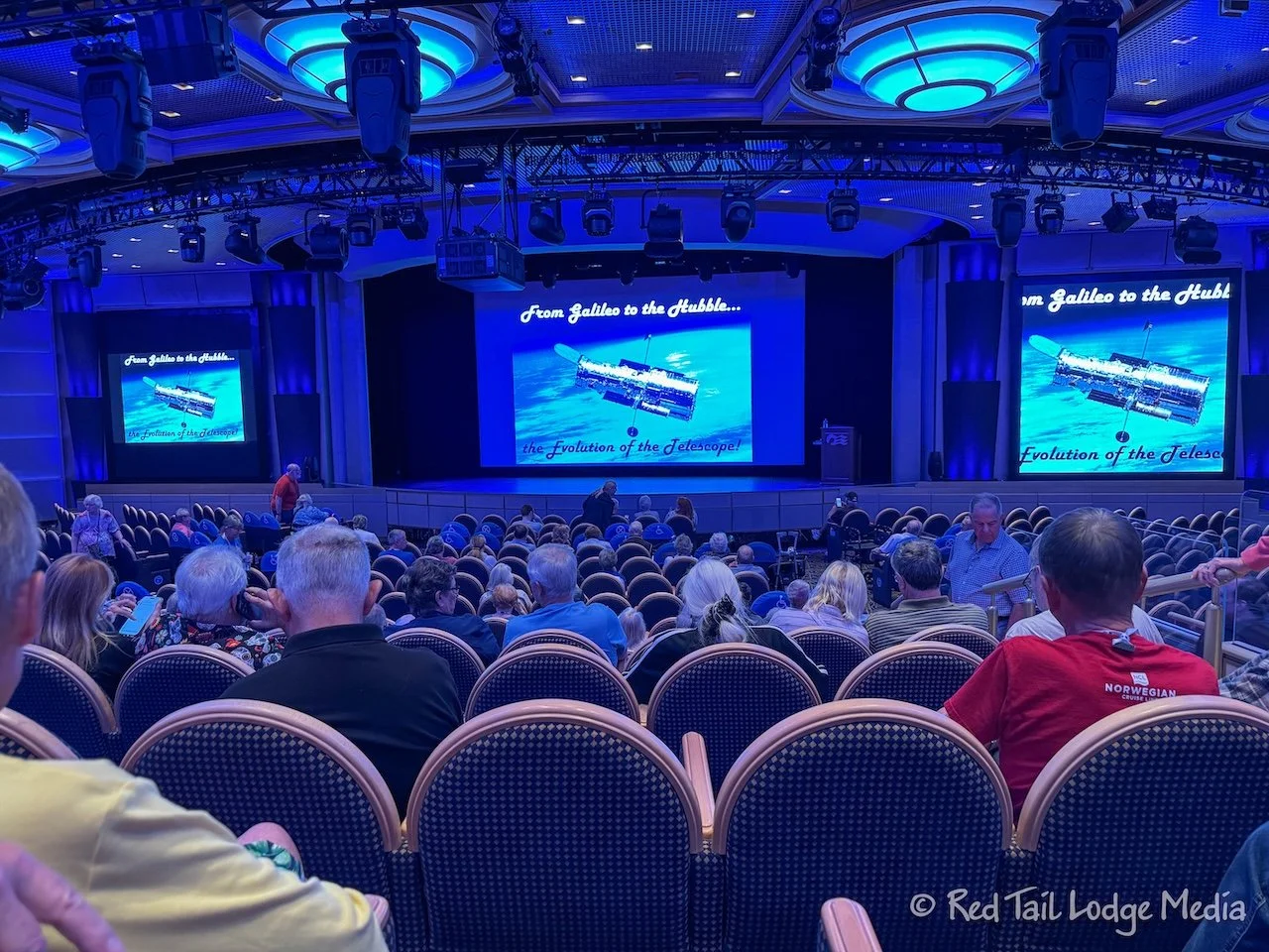 We woke up to cloudy skies and rougher seas on Wednesday, Day 4. After a buffet breakfast and relaxing on our balcony, we went down to the Enrichment Program. This one was Galileo to Hubble - The Evolution of the Telescope.