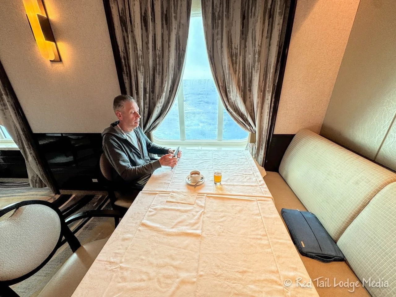 After breakfast, we relaxed on our balcony. Ann wrote up her notes about the previous day. Keith sent a check in message to our kids using our Garmin InReach (paid link) via satellite. We didn’t pay for the wifi while we were at sea. Our plan is to keep in touch via satellite, and if something comes up that requires us to get on the internet or exchange emails, then we will pay the $30 per day per device charge.