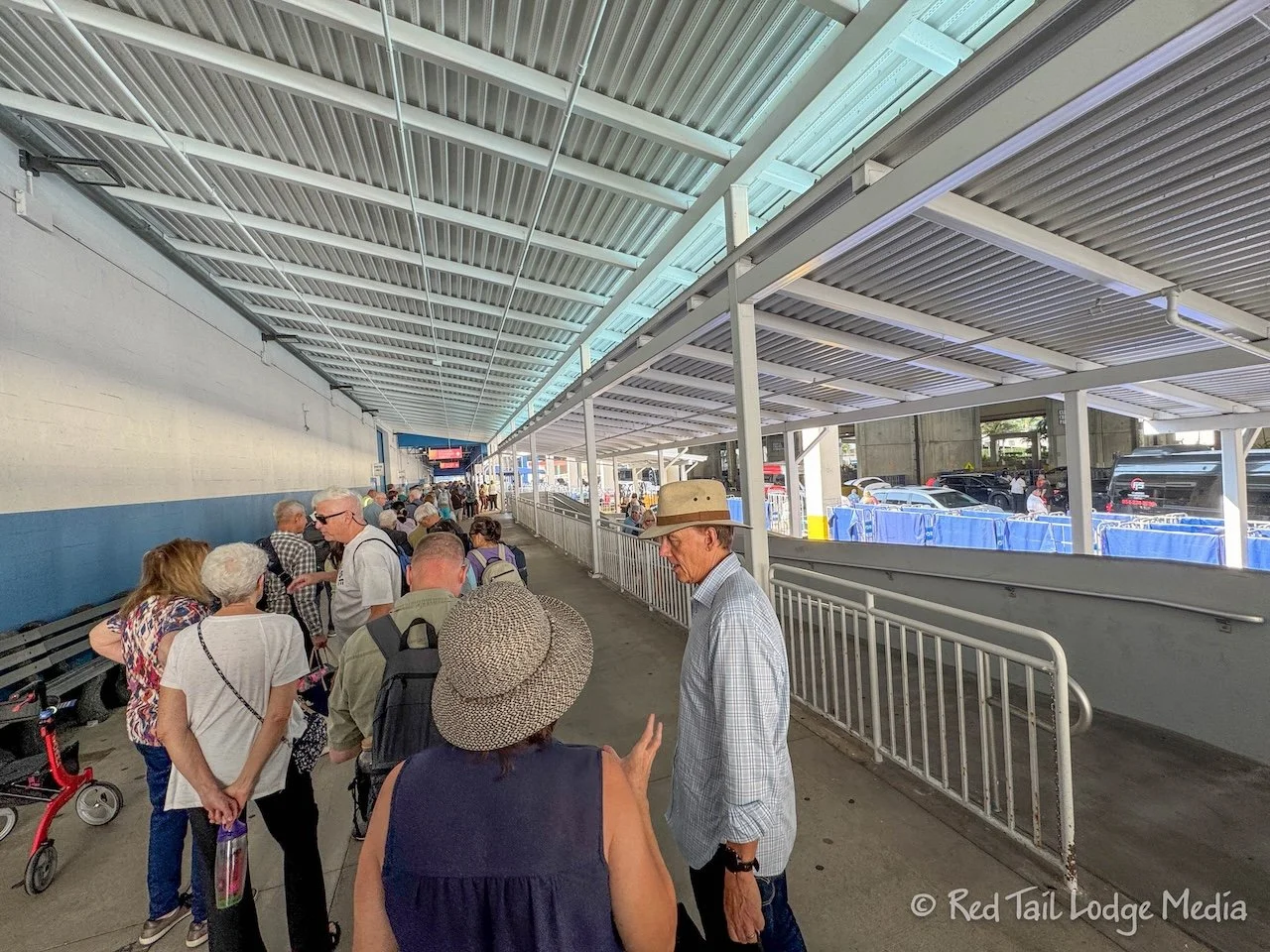 It took about 45 minutes to get through the security line, then another half hour to get checked in. We were in the Blue Line, since we opted to not have our Medallions shipped to us ahead of time. If we had, it might have saved us about ten to 15 minutes. At check in, they checked our passports, cruise tickets, and our ETA (Electronic Travel Authorisation). The ETA is a new requirement by the United Kingdom. It is similar to a Visa, but they claim it is not a Visa. You fill out a form online along with pictures of yourself, pay your small fee, and wait for acceptance, which typically only takes a couple of days. The ETA is good for two years.