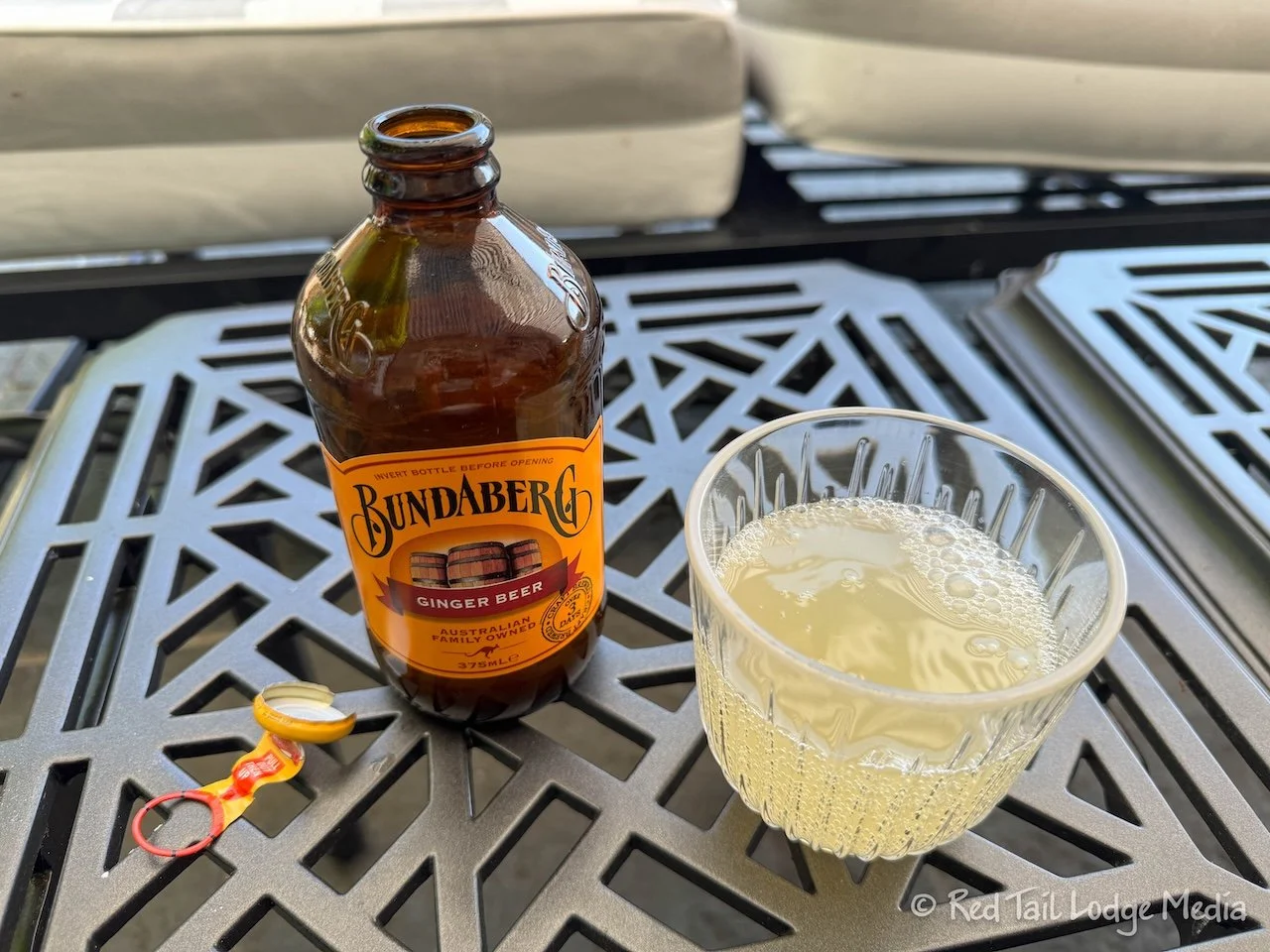 Then we sat some more, watching the birds come by to peck crumbs off the ground, and a cat that kept walking by. Our last treat was two bottles of Bundaberg ginger beer. So far, it seems like there are two popular brands of ginger beer. One is Bundaberg from Australia. The other is Fentimans from England. It had been a little while since we had a Fentimans, but, from what we remember, the Bundaberg ginger beer is a little sweeter and Fentimans is a little spicier, with a little more “bite”. We haven’t decided which one we like better yet, but we’re leaning towards Fentimans.