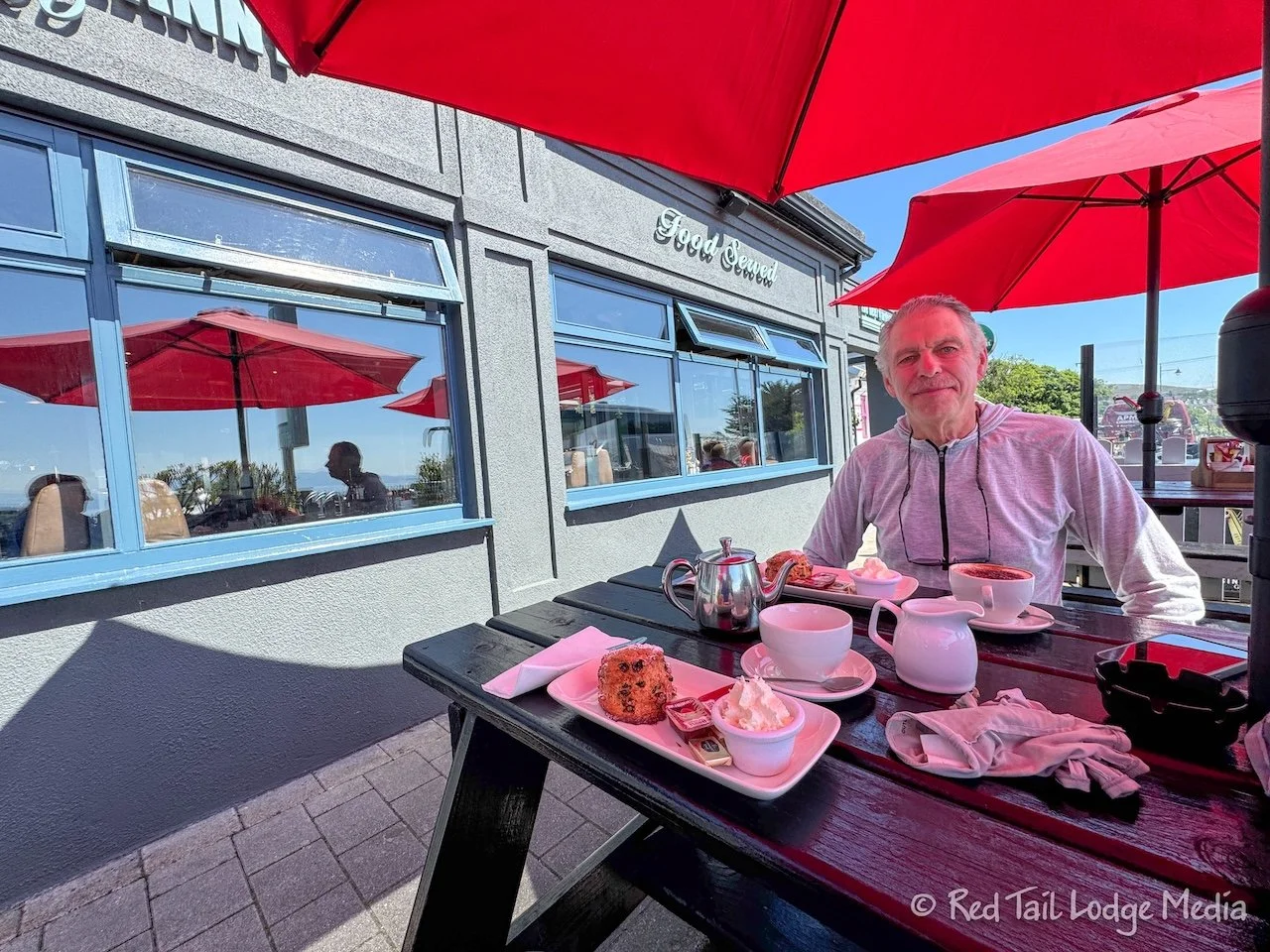 The trail goes through two towns along the way, Mulranny and Newport. In Mulranny, just off the trail is Number 9 Doherty’s Bar. We stopped there for refreshments. They were still serving breakfast and didn’t start serving lunch until 12:30 pm, so we ordered cream tea. Cream tea consists of tea and a scone with butter, jam, and clotted cream. Keith had a cappuccino instead of tea.