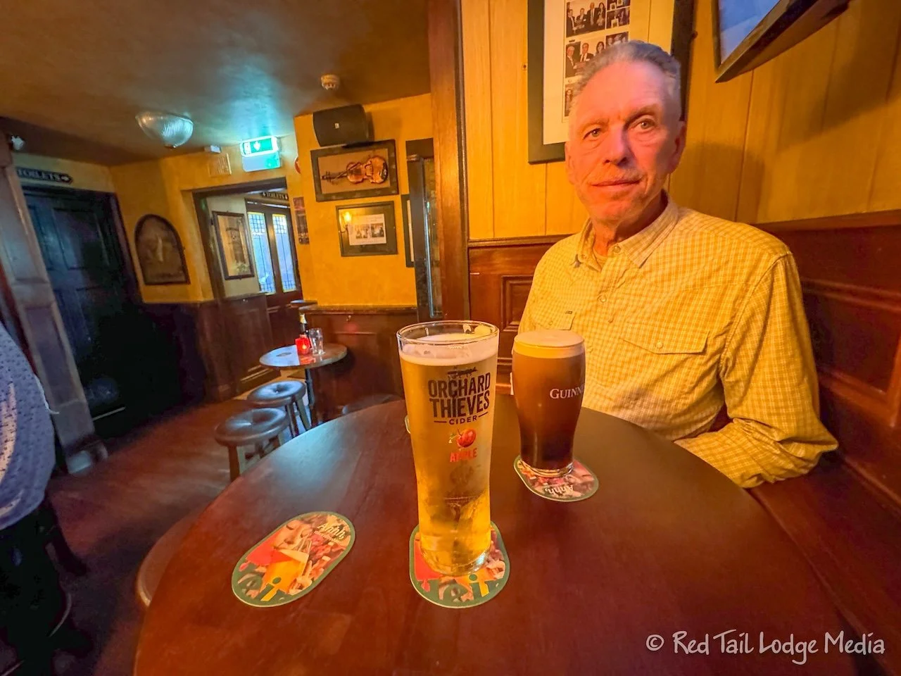 After our wonderful meal, we walked down Bridge Street to see if any bars had some early trad music sessions. A sign outside of the Porter House Pub indicated music would be starting soon, so we went inside and ordered a pint. Ann had the Orchard Thieves cider while Keith had a Guinness.