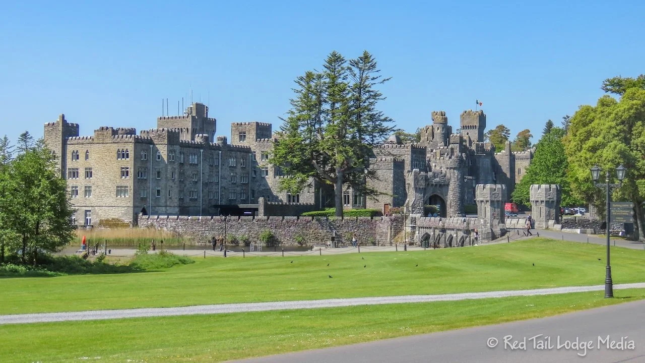 It was about a 40 minute drive from Westport to Ashford Castle. Our falconry reservation wasn’t until 3:30 pm, but we arrived at the castle around 11:30 am. The man in the top hat greeted us at the entrance gate, looked up our names, and let us in. We parked in the visitor parking lot near Mrs. Tea Boutique and Bakery, on the east side of the Cong canal.