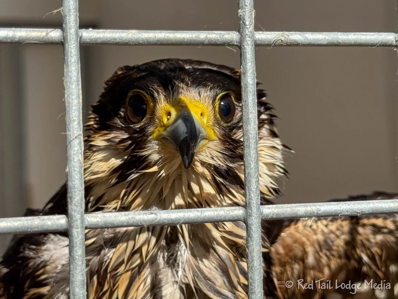 We were introduced to Ted, the peregrine falcon we saw earlier over by Mrs. Tea’s. He decided it was hot out and had fully emerged himself in his container of water. By the time we saw him, he was still soaking wet, spreading out his wings and trying to dry off in the sun.