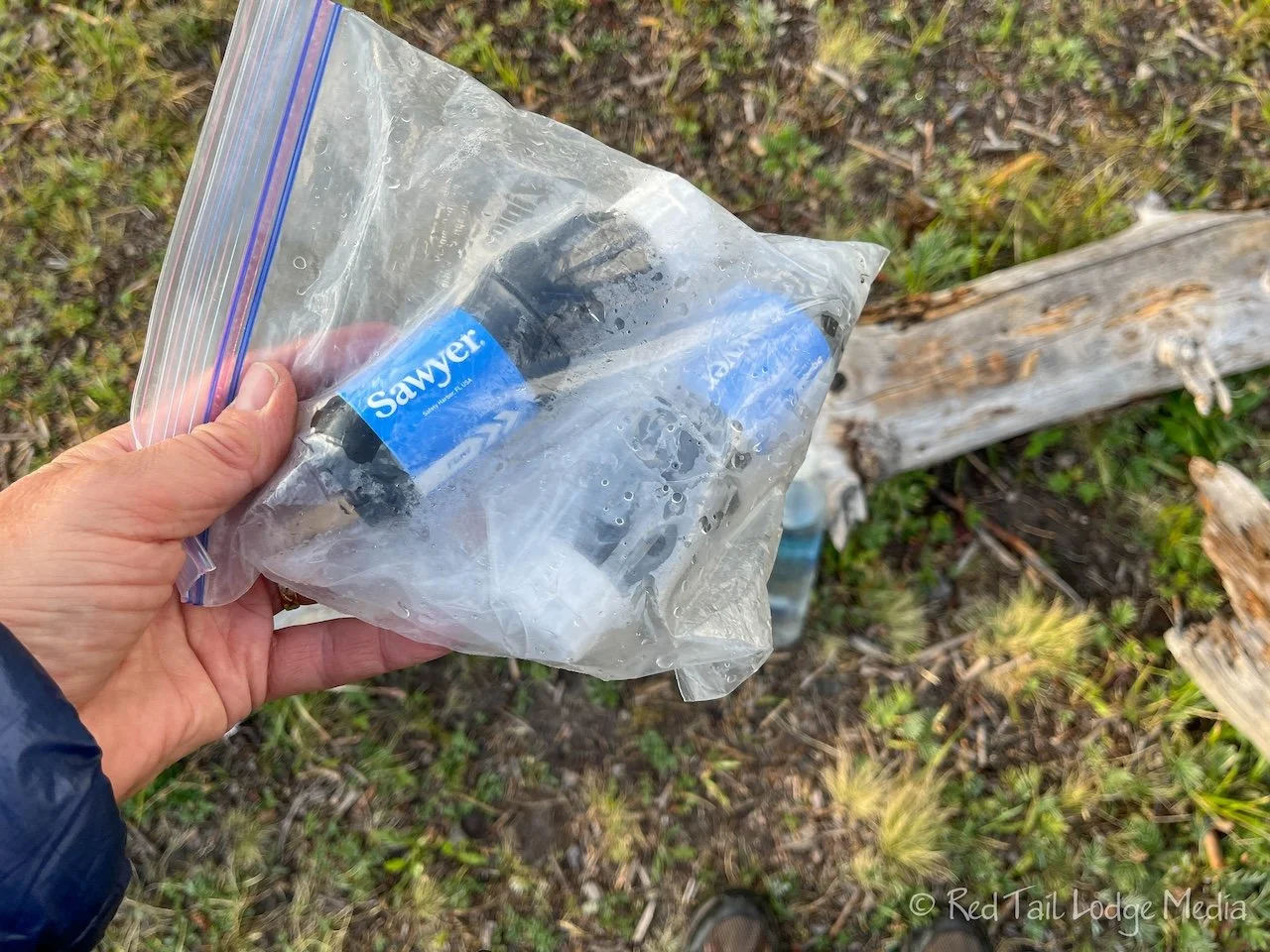We each had water filters with us, the Sawyer Squeeze (paid link). We had used the Sawyer Micro-squeeze (paid link) when we backpacked during Season One: Crisscrossing the Country. Keith preferred to fill a Smart Water bottle with the unfiltered water and attach the filter directly to it. Then he would either squeeze the filtered water into another bottle or drink directly from the filter. Ann preferred to fill the bag that came with the filter with the unfiltered water, then squeeze it through the filter into her water bottles. At least that is what she did during Season One. The bag that came with the Squeeze seemed smaller (16 oz instead of 32 oz) and didn’t want to expand much. When she tried filling it in the creek, she could only get about 250 ml of water in it at a time. That was a little too painful, so she switched to filling her bottles by squeezing water from Keith’s Smart Water bottle. (We now see that the Squeeze comes with two 32 oz bags instead of the 16 oz bag).