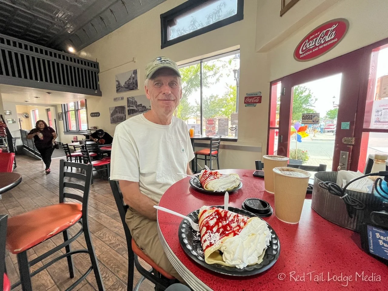 Across the street from the Route 66 Plaza is the Sipp Shoppe. We stopped for a late morning treat, chai lattes and mixed berry crepes. Pretty tasty.
