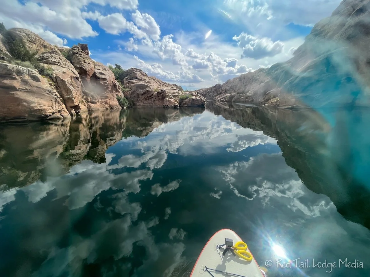 The creek was lined with rocky canyon walls. There was some graffiti on the rocks, but not a lot. The water was calm. At times, it was smooth as glass. She could see the bottom in some places, but mostly the water was deep enough that it was dark. Although there were a few kayaks who entered the creek before her, she didn’t see another person on the water the whole time. The only people she saw was a couple fishing on the rocky bank. Ann only stayed out on the water for about an hour. She’s not sure how far she went, probably less than a mile. She had forgotten to take the Garmin InReach, so she didn’t want to stay out too long. Besides, she wanted to allow enough time to get back to camp to make dinner. Otherwise, she probably would have continued further up the canyon. It was very peaceful and enjoyable.