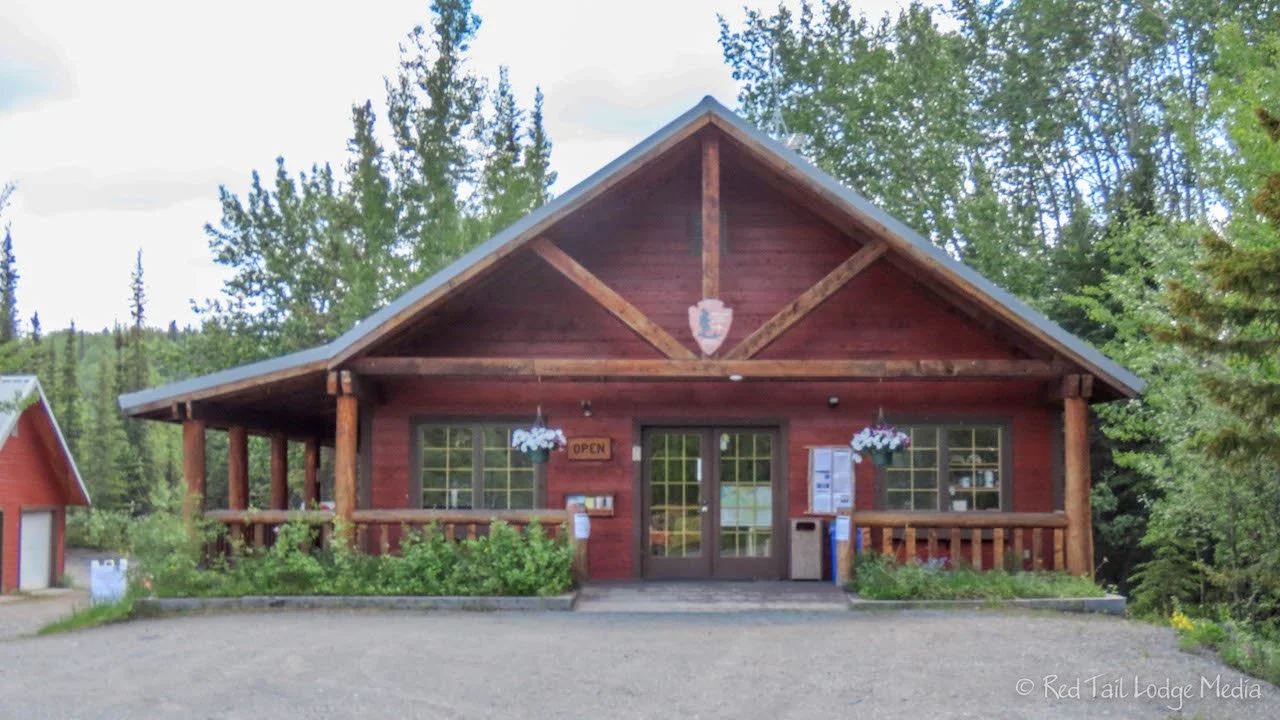 From Tok, we turned onto the Glenn Highway (also known as the Tok Cutoff) to reach Slana. There isn’t much in Slana. Our reservations were at the Hart D Ranch, right next to the post office, a mile down Nebesna Road. In addition to the RV Park, Mary Frances DeHart has rooms for rent in her lodge. When we arrived, Mary was busy working with a couple of others to load up a trailer. It sounded like she was a little overwhelmed with trying to recover from the damage done by the record breaking winter. They had 11 feet of snow, which turned to ice, and caused damage to some of the structures, collapsing her greenhouse. Because of the damage, she said she only had three RV sites open this summer instead of 43. We were the only ones with reservations for that day, so we had our pick of the three sites. They were full hookups, which we didn’t really need, but we’ll use them to dump our gray and fill our fresh water cans before we leave.